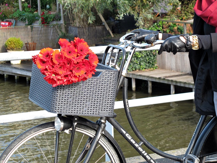 Long promised post is here, where we are continuing with the photos from the Netherlands. And when you already there, you gotta ride a bicycle and do some sightseeing! ;) Thanks to Karin, who borrowed us bikes, Olja and I was riding in the neighborhood and grabbed a sunny moment to take these photos. May I say, that they are probably my favorite so far! Hat, burgundy lips, gloves, flowers and wind, ooh how much i like them!